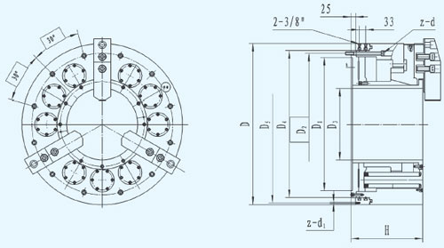 ☆The chucks mounted in front and loosing by the air actuated ,the spring clamp,large stroke jaw.