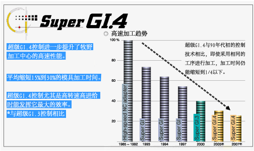 超級GI.4控制進一步提升了牧野加工中心的高速性能。 平均縮短15%到30%的模具加工時間。