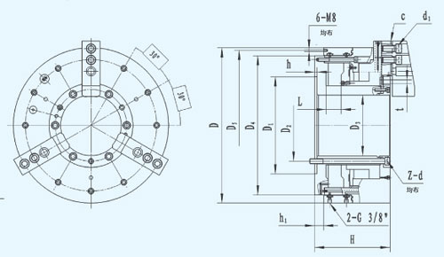 ☆前置式氣動夾緊,卡盤內藏氣缸,機床前后可各配一臺卡盤。