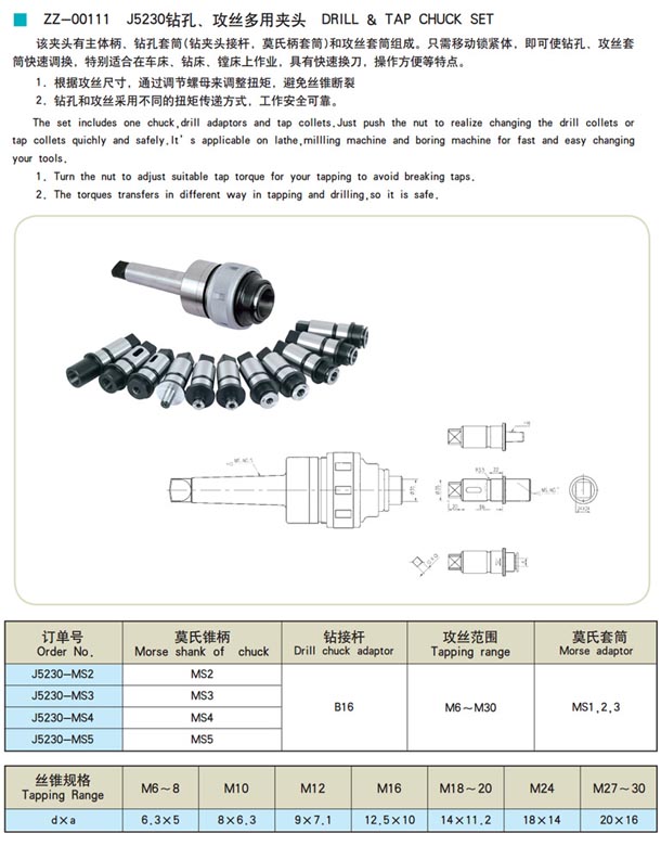 ZZ-00111-J5230鉆孔、攻絲多用夾頭